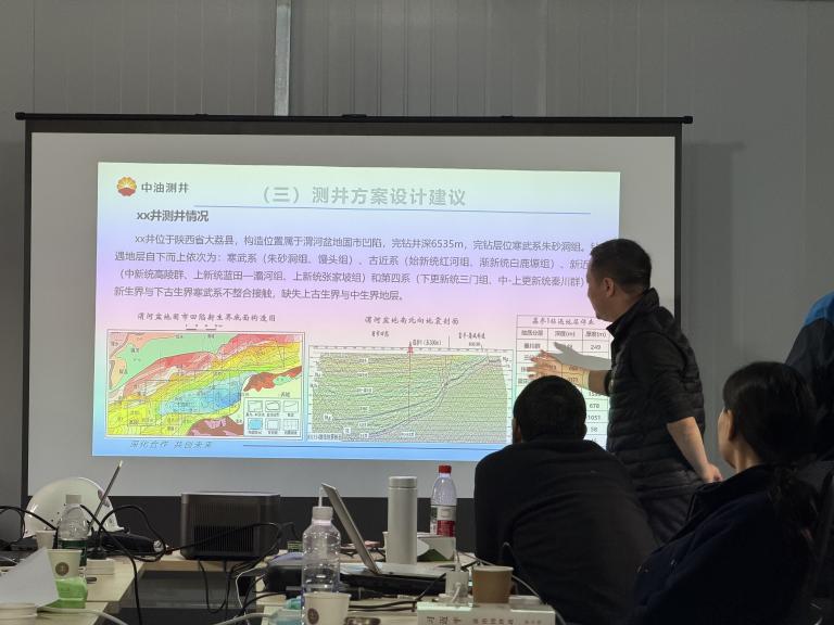 测井数据现场采集完成后,渭河深钻核心项目组成员领导小组与测井技术团队即时立即对初步处理的数据进行了联合解译与研判。讨论聚焦于测井曲线特征与前期获取的岩心资料的对比分析,初步识别出多个关键的地层界面和物性差异层段。此次现场讨论不仅验证了钻探层序的初步判断,更重要的是为后续的测井方案优化提供了直接的数据支持。基于首次测井的反馈,项目组已对下一步的测井密度、重点探测区间和特殊项目的加测等做出了针对性规划。