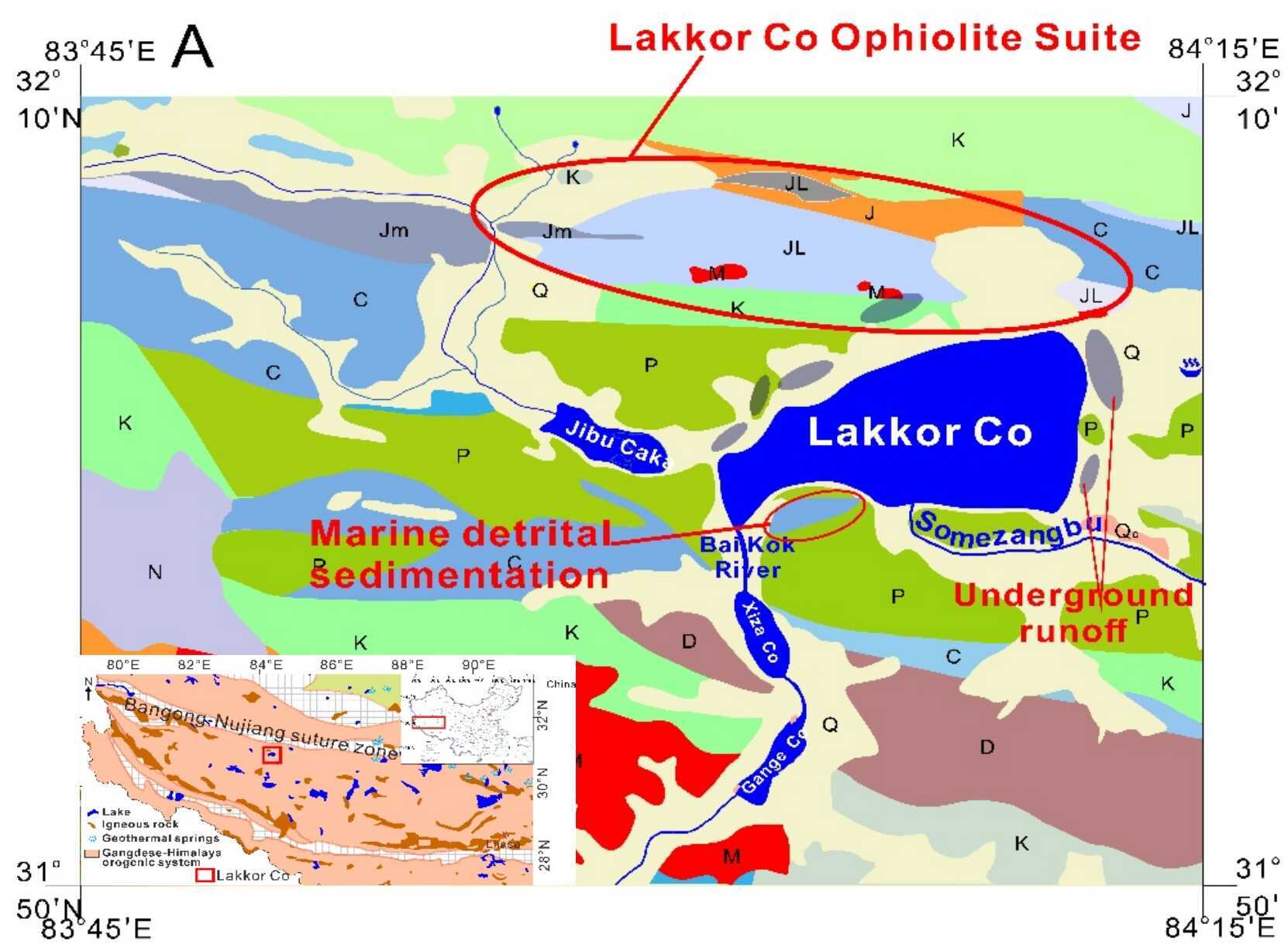 班公措-怒江构造带是青藏高原关键构造带,也是特提斯洋主支消亡的遗迹。受到洋-陆俯冲与陆-陆碰撞影响,其战略资源丰富。拉果错盐湖位于班公措-怒江构造带西端,是一个大型卤水矿床,锂、硼、钾、铷等关键资源储量大...