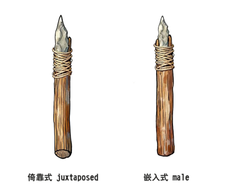 图3 西沟两种不同装柄方式的工具示意图